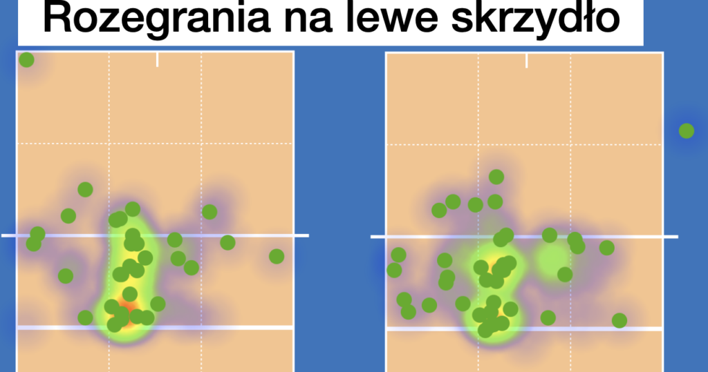 I na koniec rozegranie na lewy atak. Mam nadzieję, że Wy tutaj tak jak ja widzicie największy rozrzut piłek.