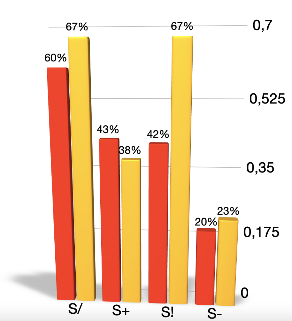 • po wykonaniu zagrywki +, czyli odrzucającej przeciwnika od siatki, było już odwrotnie: 42% do 38%;