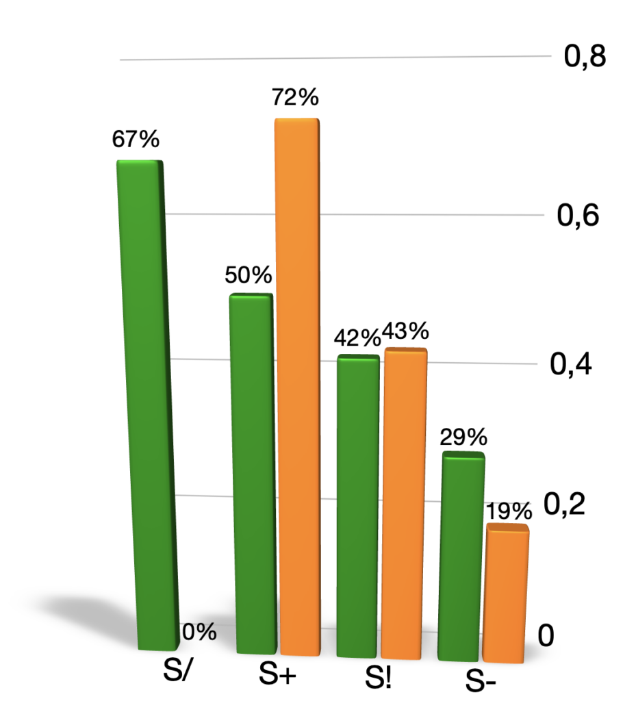 - przyjęcie u jednych podskoczyło o 10 pp, u drugi spadło o 4 pp,