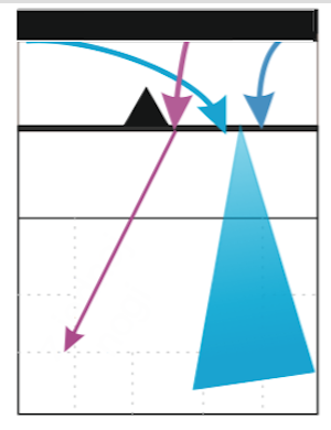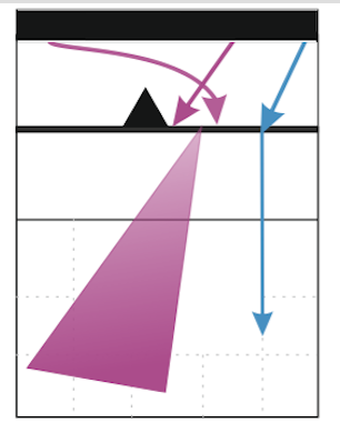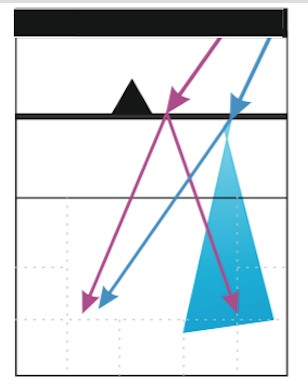Trójkąt oznacza, że jest to główny rodzaj ataku środkowego. Strzałka informuje, że to rzadziej używany atak. W kolorze fioletowym (według mnie różowym) narysowany jest kierunek ataku do 5. strefy. Odnosi się on do dwóch rodzajów ataków blisko rozgrywającego (“X1” oraz “XC“) do których środkowy nabiega z 4. strefy oraz tzw. podwójny haczyk (“XD“), wykonywany w ustawieniach P3 oraz P6 ze względu na specyficzne ustawienia środkowych. Niebieskim kolorem oznaczona jest odka. Widzimy, że tutaj głównym kierunkiem ataku jest strefa 1.