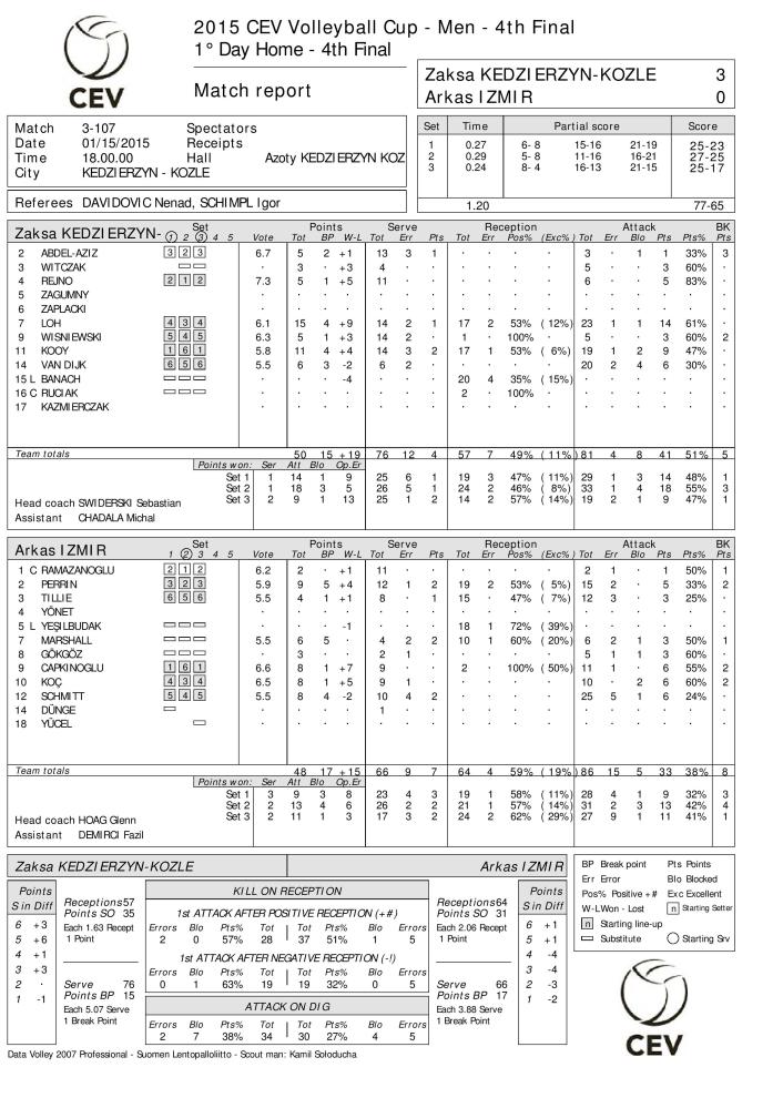 Mieliśmy 51% punktowych ataków, podczas gdy Arkas tylko 38%. Nasza efektywność wyniosła 36%, a ich 15%! To był właśnie ten element, którym wygraliśmy. Arkas popełnił bardzo dużo błędów w ataku.